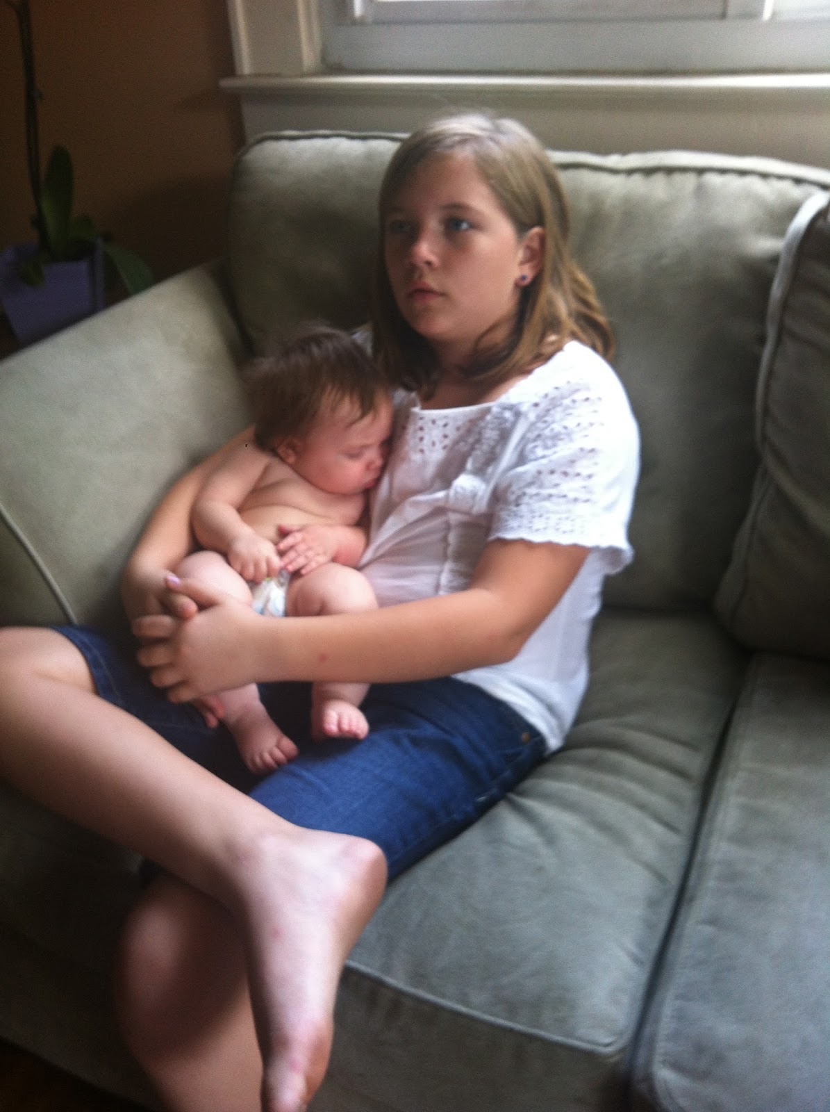Something about a sister's touch...Sophie very rarely fell asleep in people's arms so this was kind of big!